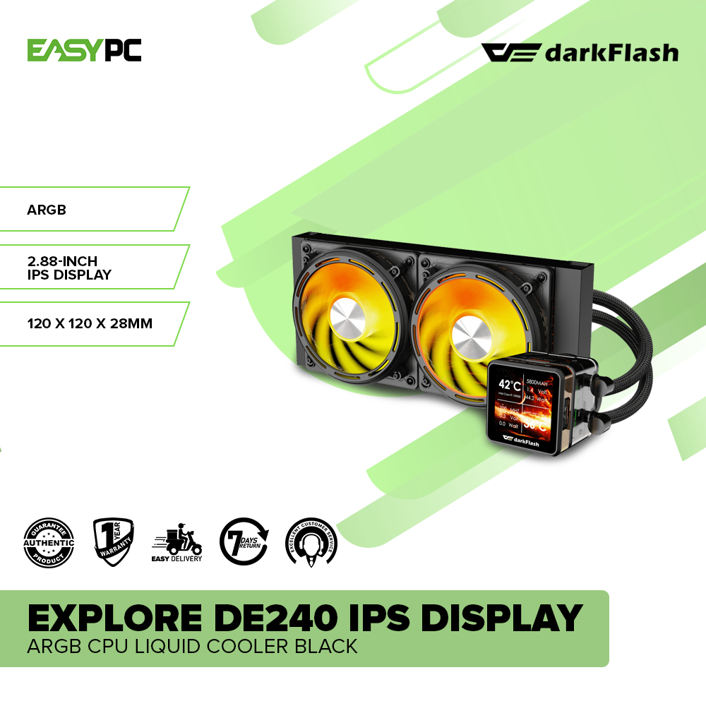 - DarkFlash Explore DE240 IPS Display ARGB CPU Liquid Cooler