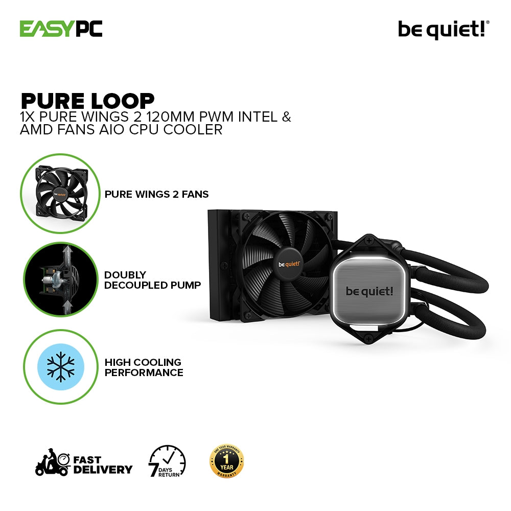 - BeQuiet Pure Loop AIO CPU Cooler Intel & AMD, 1x and 2x Pure Wings 2 120mm PWM Fans, Double Decoupled Pump, All in One Water Cooling System 4JTP