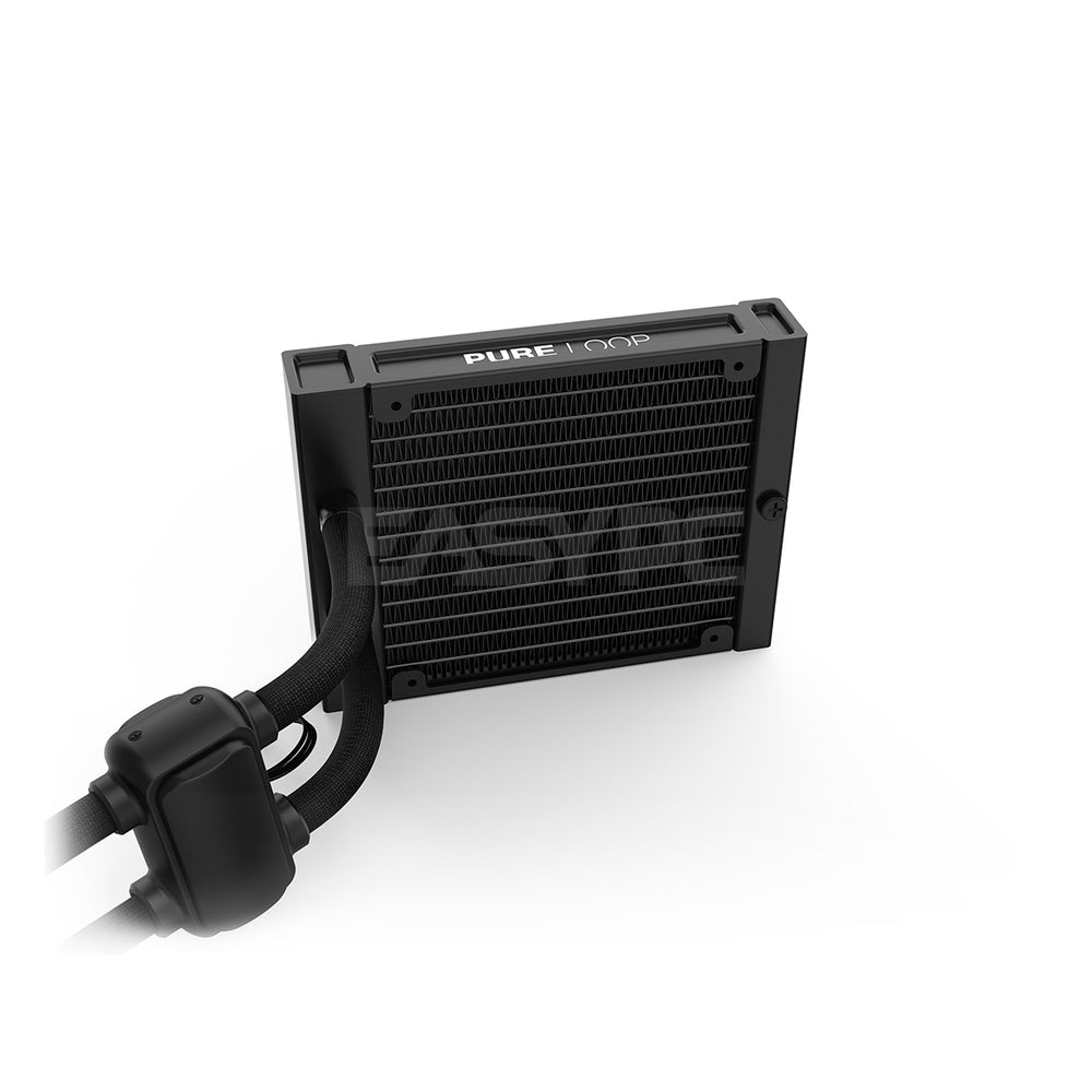 - An all-black design in combination with white LED illumination makes for an elegant look. This is further underlined by the aluminum-style cooling block that guarantees the Pure Loop to look good in any system