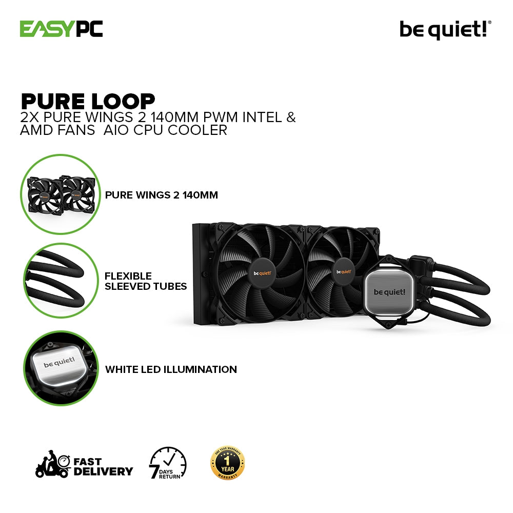 - BeQuiet Pure Loop (BW007) AIO CPU Cooler Intel & AMD, 2x Pure Wings 2 140mm PWM Fans, Doubly decoupled pump for quiet operation 4JTP BEBW2439