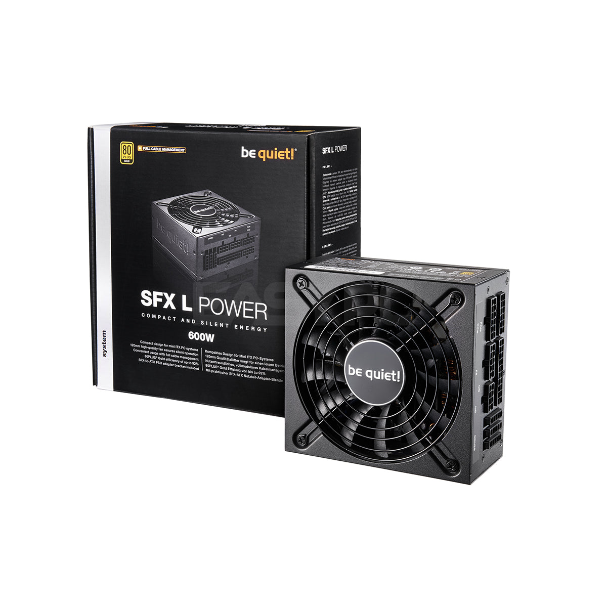 - be quiet! SFX L Power 600W is especially recommended for mini ITX PCs and compact gaming systems. For compact PC systems that perform beyond the ordinary, with an ideal combination of features, power, efficiency and reliability, choose SFX L Power 600W.