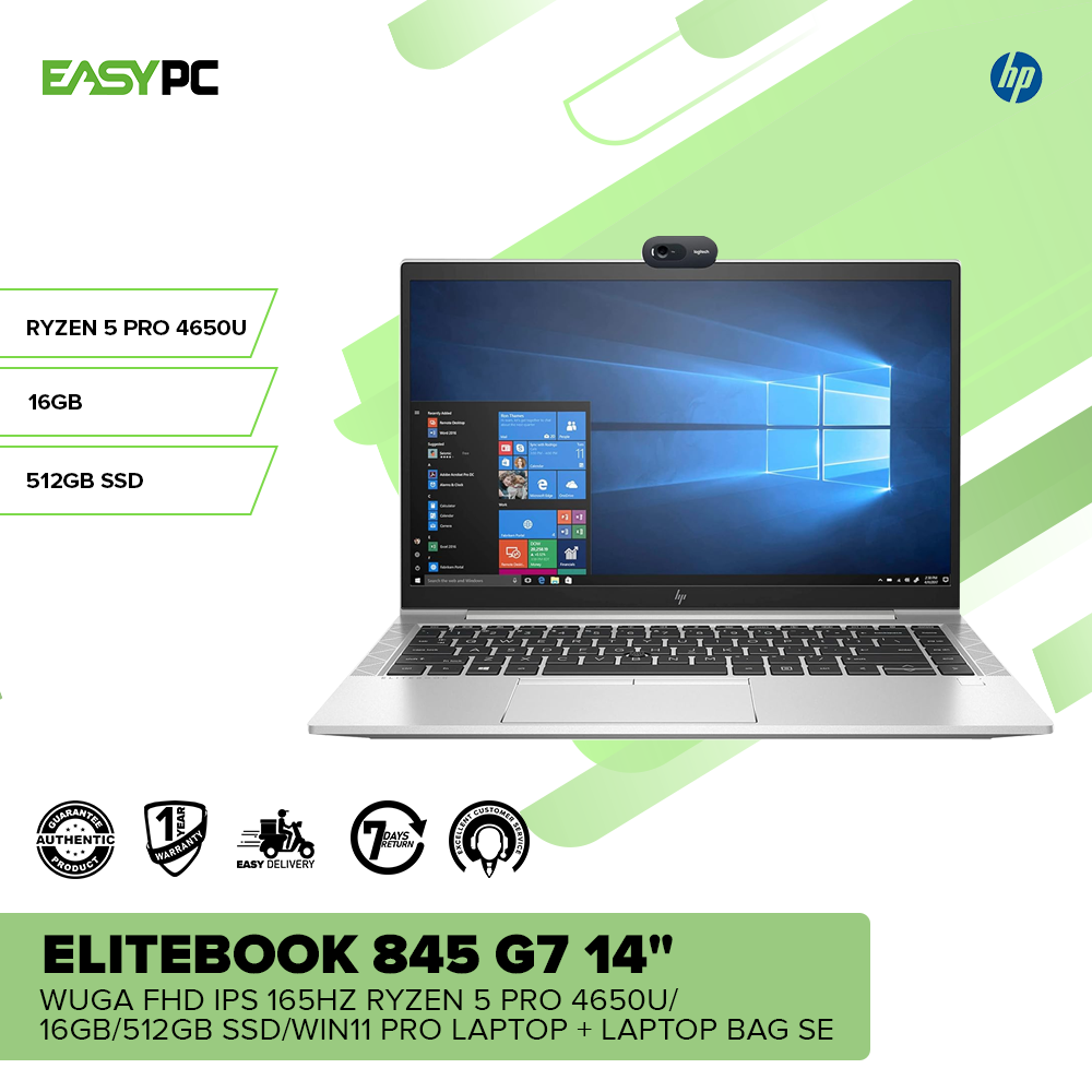 - HP Elitebook 845 G7 14" WUGA FHD IPS 165Hz Ryzen 5 Pro 4650U/16GB/512GB SSD/Win11 Pro Laptop + Laptop bag SE