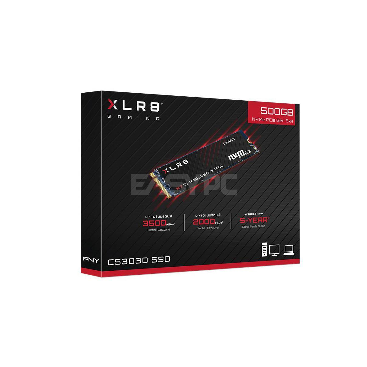 The PNY CS3030 500gb M.2 NVME Solid State Drive Gen 3 is a 500GB M.2 solid state drive from PNY, providing storage for your desktop or laptop system. In the M.2 form factor, it uses flash-based storage technology for fast data access, reducing boot times and application load speeds.
