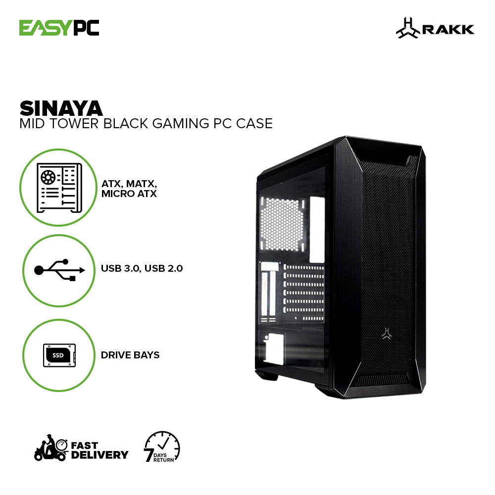 - Rakk Sinaya USB 3.0, USB 2.0 Mid Tower Gaming PC Case Black