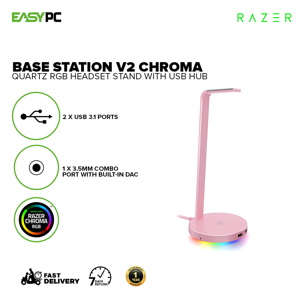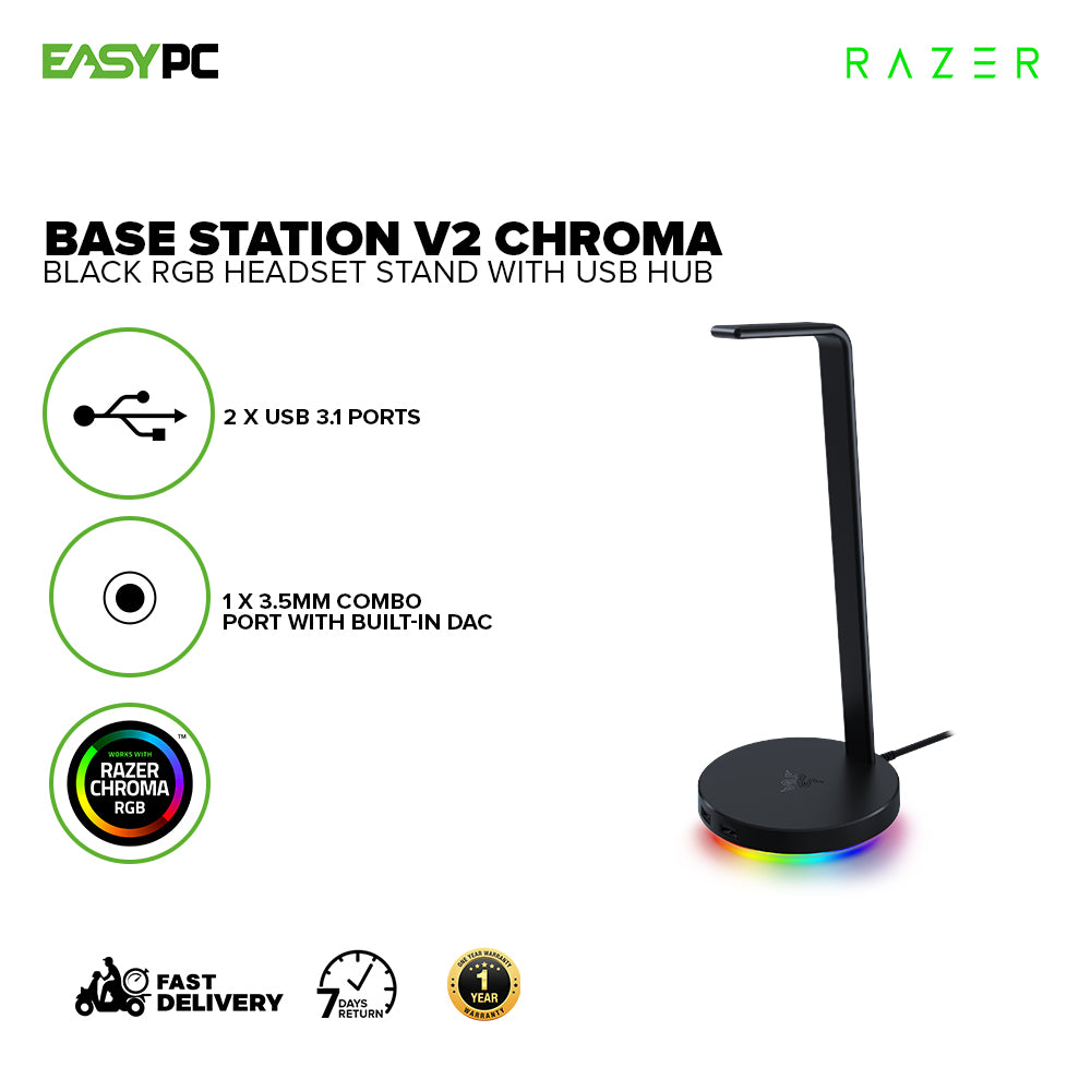- Razer Base Station V2 Chroma RGB, All new aluminum construction, Enhanced heigh for larger headset, Headset Stand with USB Hub 1ION