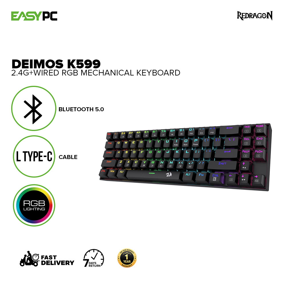 - Redragon Deimos K599 50 million click life2.4G+ Wired and Wireless RGB Mechanical Gaming keyboard REK52233 15CYB