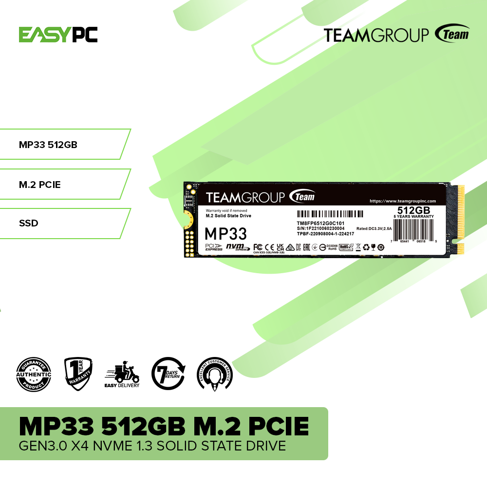 - Team Group MP33 512GB M.2 PCIe Gen3.0 x4 NVME 1.3 Solid State Drive